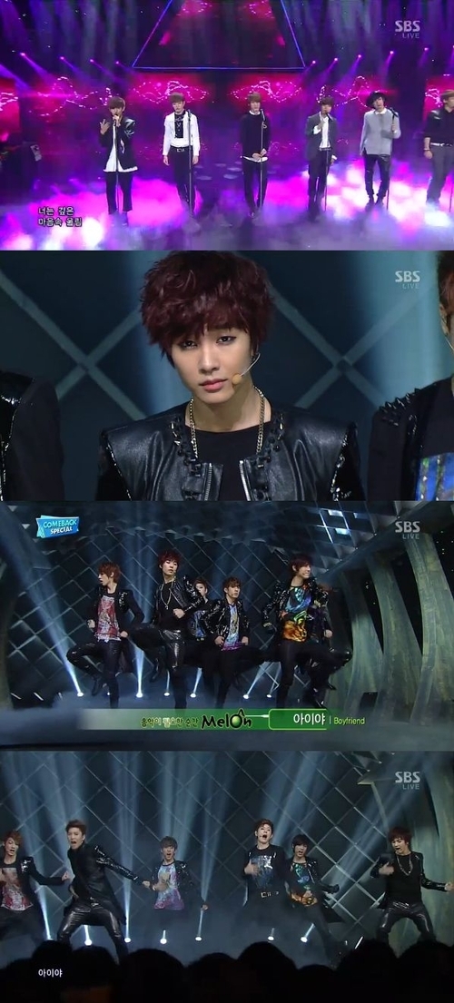 보이프렌드는 13일 오후 방송된 SBS '인기가요'를 통해 신곡 '그곳에'와 '아이야(I yah)'로 컴백무대를 꾸몄다.