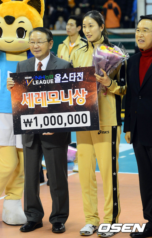 13일 서울잠실학생체육관에서 NH농협 2012-2013 V리그 올스타전이 성대하게 치러졌다. 4세트 스코어 합산 방식으로 열린 이날 본 경기서는 K스타가 세트스코어 3-1(15-9, 15-12, 8-15, 15-13), 합계 53-49로 기분 좋은 승리를 거뒀다. / baik@osen.co.kr