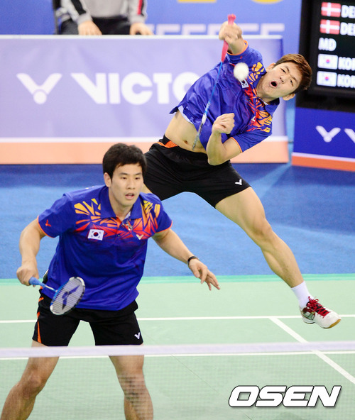 13일 오후 서울 방이동 올림픽공원 SK올림픽핸드볼경기장에서 열린 '2013 빅터 코리아오픈 배드민턴 슈퍼시리즈 프리미어' 결승전에서 이용대(25, 삼성전기)-고성현(26, 김천시청, 세계랭킹 10위) 조가 세계랭킹 1위를 꺾고 2013 빅터 코리아오픈 배드민턴 슈퍼시리즈프리미어 정상에 섰다.