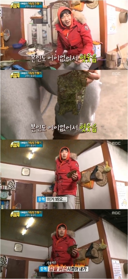 이종혁은 13일 방송된 MBC 예능 프로그램 ‘일밤-아빠 어디가’에서 아침 식사로 김을 굽기 위해 가스불에 김을 갖다댔다. 하지만 적당한 거리 유지에 실패해 김에 불이 붙는 어이 없는 상황이 벌어졌다.