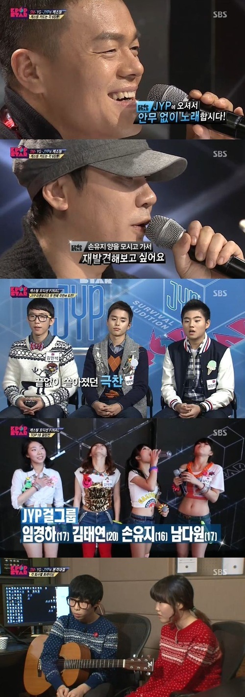 이날 캐스팅 결과 YG 양현석은 JYP에서 트레이닝을 받고 격정적인 댄스 실력을 보여준 손유지, 김태연과 SM에서 트레이닝을 받고 감각적인 퍼포먼스를 펼친 전민주를 뽑았다.
