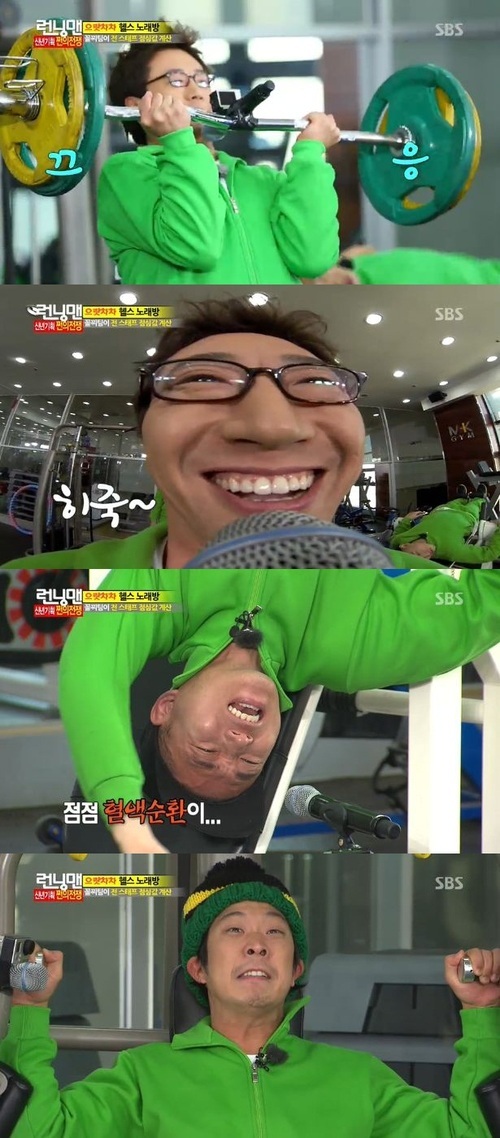 이에 하하, 개리와 한 팀을 이룬 박신양은 바벨에 설치된 마이크를 이용, 괴력을 발휘하며 노래 부르기에 성공했다. 그는 이어 다리 찢기를 통해 바닥에 설치된 마이크를 이용해 노래에 도전하며 유연성도 발휘해 멤버들을 놀라게 만들었다.