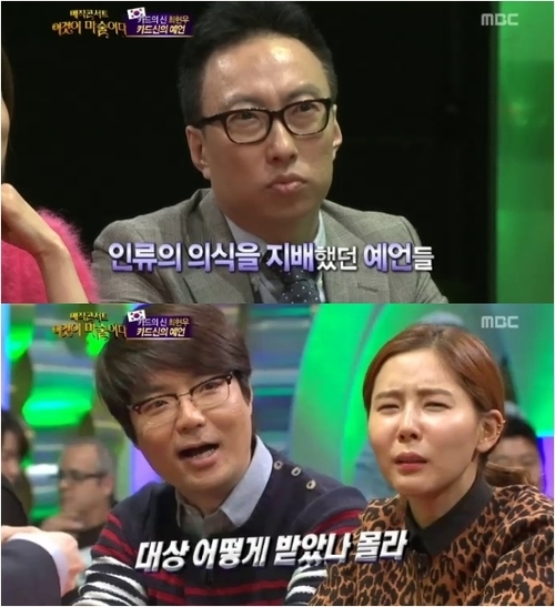 김태현은 13일 방송된 MBC 예능 프로그램 ‘일밤-매직콘서트 이것이 마술이다’에서 박명수가 진행을 더듬자 “연예대상은 어떻게 받았나 모르겠다”고 공격했다.