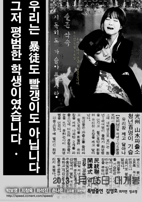 스피드 뮤직비디오에 담긴 민주화 항쟁은 당시 민주화를 갈망했던 사람들의 마음을 음악으로 표현한 것으로, 최근 철야 작업까지 하며 편집을 마친 작품이다.