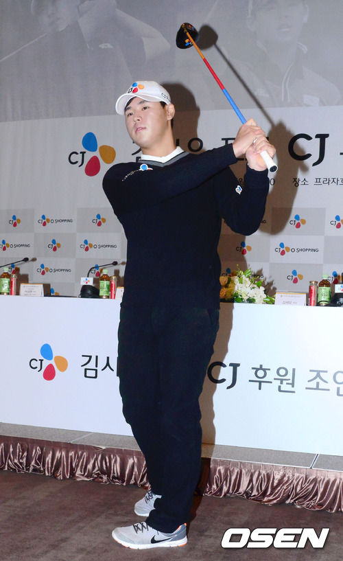 14일 오전 서울 플라자호텔에서 진행된 김시우 프로 CJ후원 조인식에서 김시우가 포토타임을 갖고 있다.
