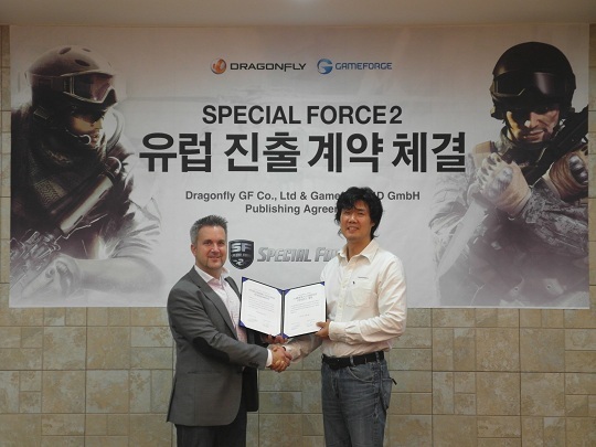FPS명가 드래곤플라이가 '스페셜포스2'로 세계시장 공략을 노린다. 드래곤플라이는 유럽 온라인게임 최고 퍼블리셔 게임포지와 유럽 전역 및 중동, 북아프리카 총 75개국에 대한 퍼블리싱 계약체결 조인식을 갖고 본격적인 세계시장 공략에 돌입한다고 14일 발표했다.