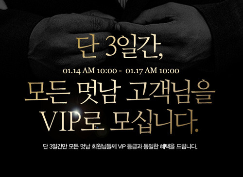 멋남은 14일부터 17일까지 멋남 모든 회원에게 VIP 등급과 동일한 혜택을 제공한다고 밝혔다.