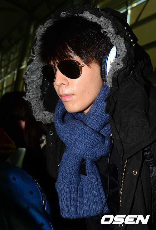 14일 오후 말레이시아에서 열리는 '삼성 갤럭시 제27회 골든디스크' 시상식에 참석하기 위해 출국하는 슈퍼주니어 동해가 인천국제공항 출국장으로 향하고 있다.