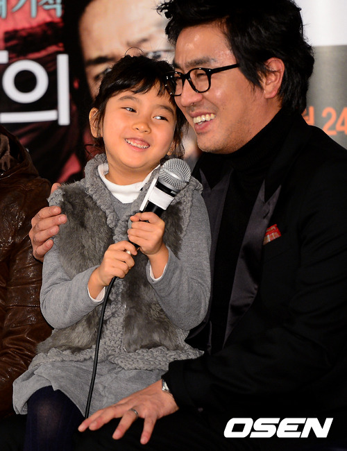 아역배우 갈소원 양이 류승룡의 답변에 마이크를 들어주고 있다.