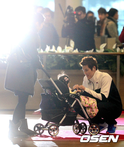 14일 오후 호주로 전지훈련을 떠나는 박태환이 인천국제공항 출국장에서 조카 태희양을 바라보며 미소를 짓고 있다.