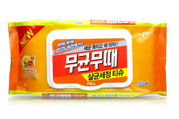 ‘무균무때 살균세정 티슈’는 미국 FDA에서 인정한 특수 성분 사용으로 인체유해균 박멸효과가 있다. 인체에는 안전한 제품으로 티슈처럼 한 장씩 간편하게 뽑아 사용할 수 있는 것이 특징.