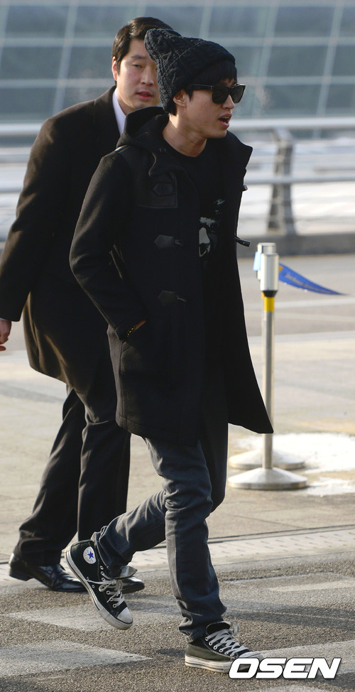 15일 오전 말레이시아에서 열리는 '삼성 갤럭시 제27회 골든디스크' 시상식에 참석하기 위해 출국하는 에픽하이 타블로가 인천국제공항을 통해 출국하고 있다.