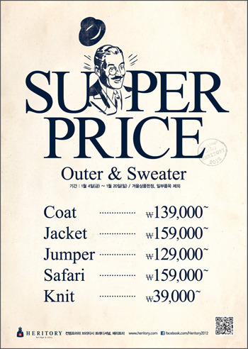 세정그룹의 헤리토리가 20일까지 겨울 아우터 및 니트 제품 110여종을 파격가에 선보이는 ‘Super Price’ 행사를 진행한다고 밝혔다.