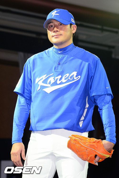 15일 오후 서울 역삼동 르네상스 서울호텔에서 열린 제3회 월드베이스볼 클래식(WBC) 국가대표팀 출정식 및 유니폼 발표회에서 서재응이 포토타임을 갖고 있다.