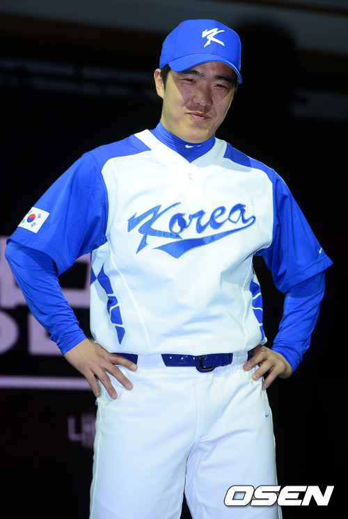 WBC 야구 대표팀 유니폼은 흰색 상하의 구성의 홈 유니폼, 파란색 상의와 흰색 하의의 원정 유니폼으로 구성되어 있다. / baik@osen.co.kr
