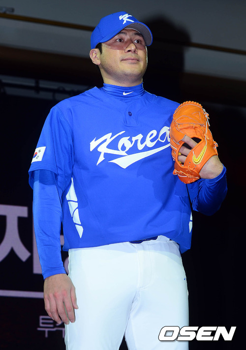 WBC 야구 대표팀 유니폼은 흰색 상하의 구성의 홈 유니폼, 파란색 상의와 흰색 하의의 원정 유니폼으로 구성되어 있다. / baik@osen.co.kr