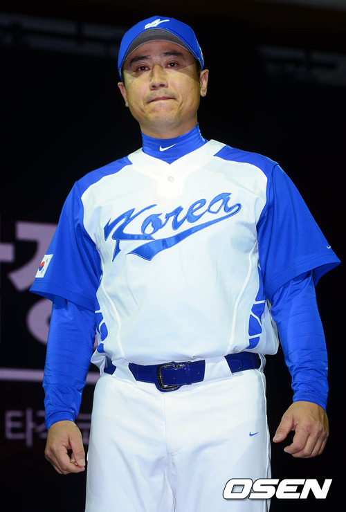 15일 오후 서울 역삼동 르네상스 서울호텔에서 열린 제3회 월드베이스볼 클래식(WBC) 국가대표팀 출정식 및 유니폼 발표회에서 박정태 코치가 포토타임을 갖고 있다.