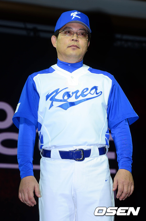15일 오후 서울 역삼동 르네상스 서울호텔에서 열린 제3회 월드베이스볼 클래식(WBC) 국가대표팀 출정식 및 유니폼 발표회에서 양상문 코치가 포토타임을 갖고 있다.