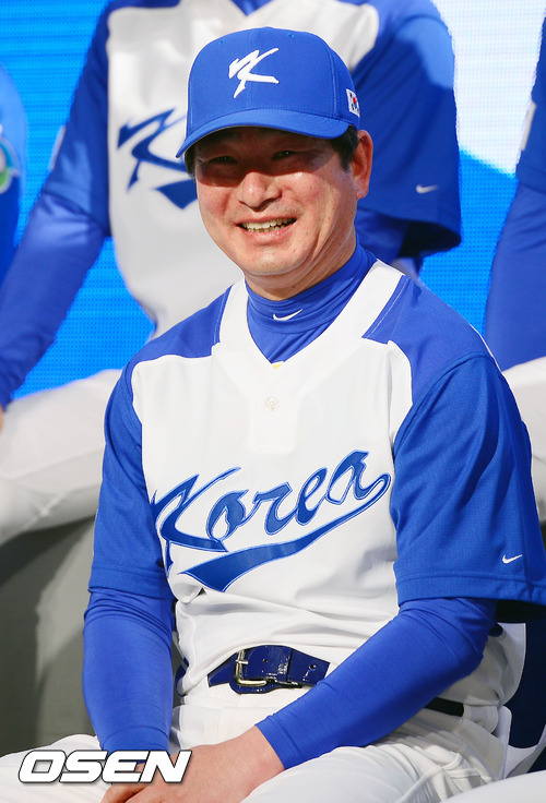 15일 오후 서울 역삼동 르네상스 서울호텔에서 열린 제3회 월드베이스볼 클래식(WBC) 국가대표팀 출정식 및 유니폼 발표회에서 류중일 감독이 미소짓고 있다.