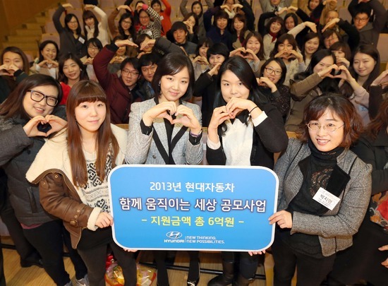 현대자동차는 15일 서울 동작구에 위치한 서울여성플라자에서 회사 관계자 및 공모사업 심사·자문단, 사업 선정기관 관계자 등 총 100여 명이 참석한 가운데 ‘2013년 현대차 ‘함께 움직이는 세상 공모사업’ 지원금 전달식을 가졌다.
