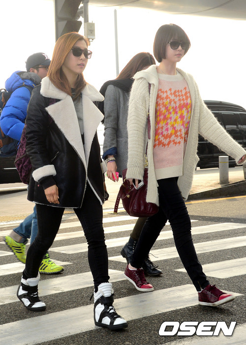 15일 오후 말레이시아에서 열리는 '삼성 갤럭시 제27회 골든디스크' 시상식에 참석하기 위해 출국하는 에프엑스 루나, 설리가 인천국제공항을 통해 출국하고 있다.