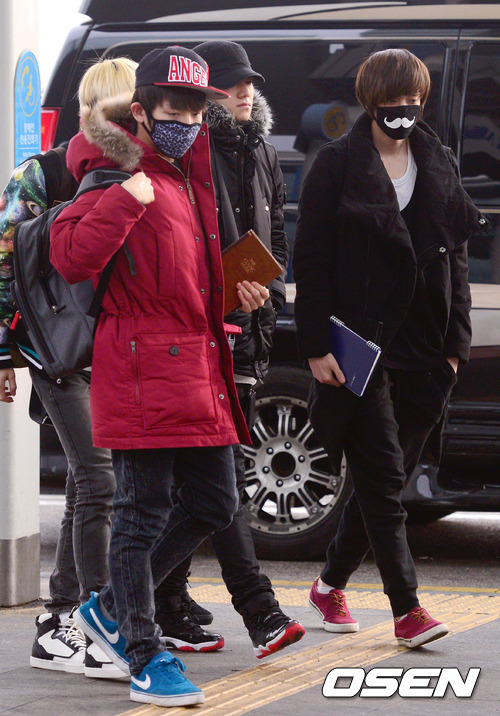 15일 오후 말레이시아에서 열리는 '삼성 갤럭시 제27회 골든디스크' 시상식에 참석하기 위해 틴탑이 출국하고 있다.