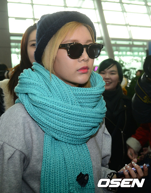 15일 오후 말레이시아에서 열리는 '삼성 갤럭시 제27회 골든디스크' 시상식에 참석하기 위해 출국하는 티아라 큐리가 인천국제공항을 통해 출국하고 있다.