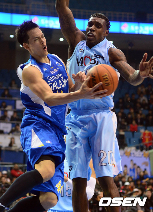 15일 오후 서울 잠실 실내체육관에서 열린 '2012-2013 KB국민카드 프로농구' 서울 삼성과 울산 모비스의 경기 2쿼터 이동준이 동료에게 패스를 하고 있다.