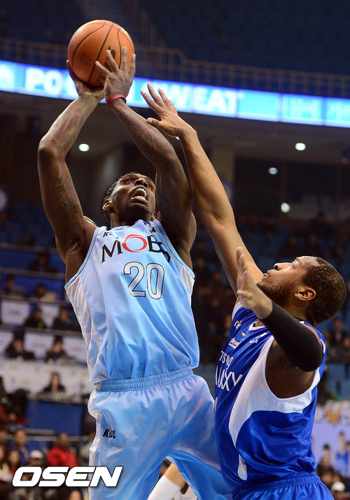 15일 오후 서울 잠실 실내체육관에서 열린 '2012-2013 KB국민카드 프로농구' 서울 삼성과 울산 모비스의 경기 3쿼터 라틀리프가 타운스를 앞에두고 슛을 시도하고 있다.