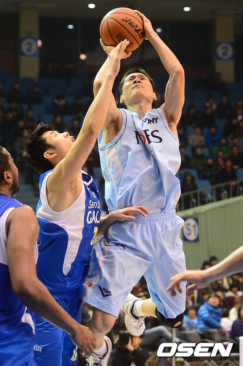 15일 오후 서울 잠실 실내체육관에서 열린 '2012-2013 KB국민카드 프로농구' 서울 삼성과 울산 모비스의 경기 4쿼터 박종천이 임동섭을 피해 슛을 시도하고 있다.
