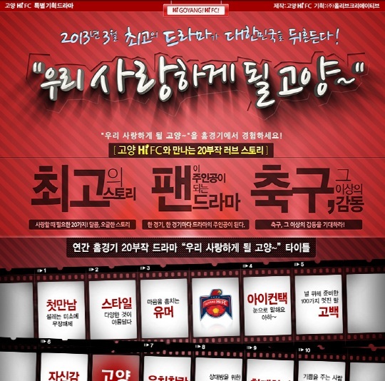고양 Hi FC가 2013 시즌 홈경기 전 경기를 20부작의 드라마 컨셉으로 기획하면서 시즌권 판매에 돌입했다.