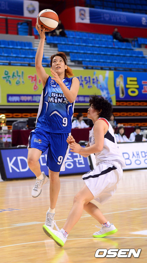 16일 경산실내체육관에서 열린 'KDB금융그룹 2013 여자농구 챌린지컵' 삼성생명과 한림성심대의 경기, 2쿼터 삼성생명 양지영이 레이업슛을 시도하고 있다.