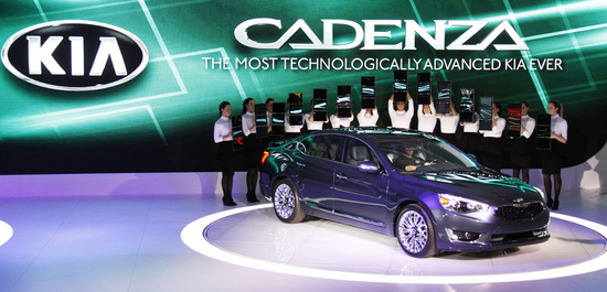 기아자동차는 15일(현지시간) 미국 디트로이트 코보센터(Cobo Conference & Exposition Center)에서 열린 '2013 북미 국제 오토쇼(2013 North American International Auto Show, NAIAS)’에 ‘더 뉴 K7(현지명 카덴자 Cadenza)’을 선보였다.