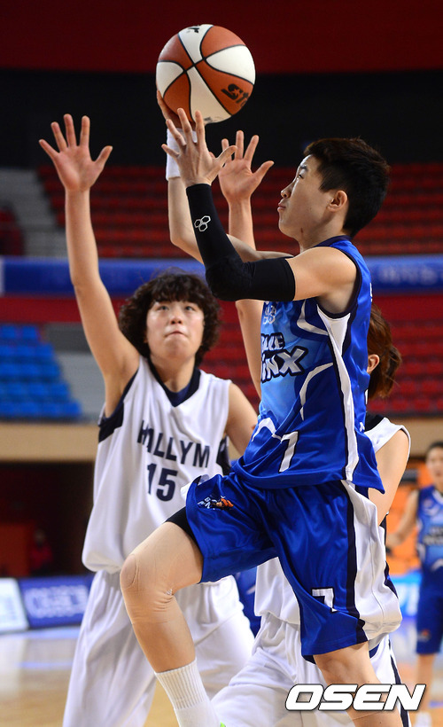 16일 경산실내체육관에서 열린 'KDB금융그룹 2013 여자농구 챌린지컵' 삼성생명과 한림성심대의 경기, 2쿼터 삼성생명 박태은이 레이업슛을 시도하고 있다.