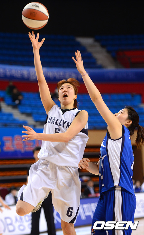 16일 경산실내체육관에서 열린 'KDB금융그룹 2013 여자농구 챌린지컵' 삼성생명과 한림성심대의 경기, 3쿼터 한림성심대 장혜정이 레이업슛을 시도하고 있다.