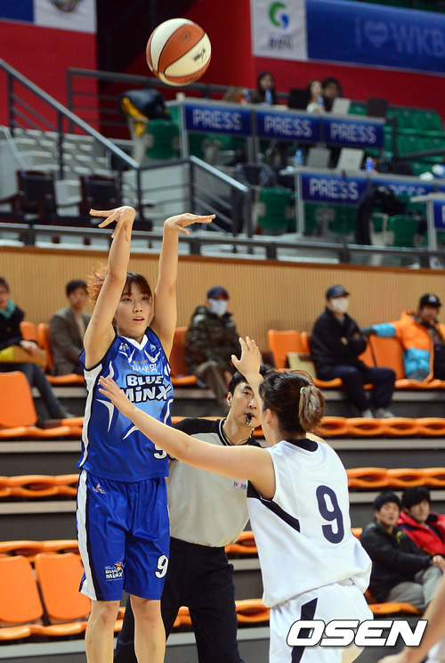 16일 경산실내체육관에서 열린 'KDB금융그룹 2013 여자농구 챌린지컵' 삼성생명과 한림성심대의 경기, 4쿼터 삼성생명 양지은이 3점슛을 시도하고 있다.