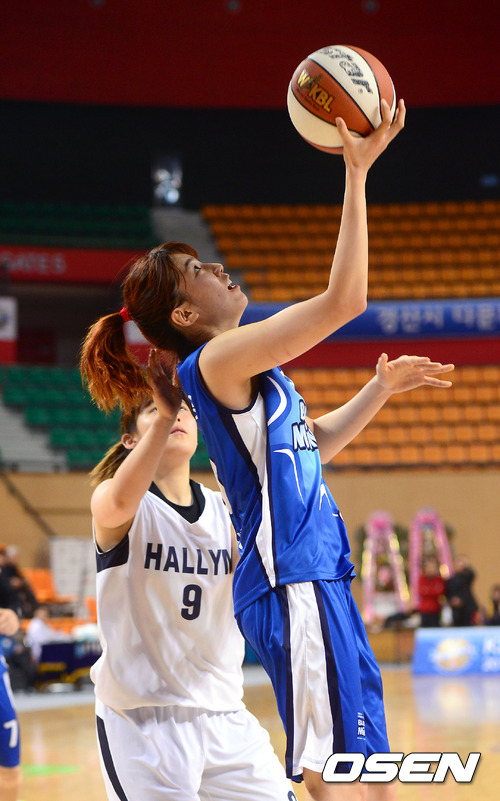 16일 경산실내체육관에서 열린 'KDB금융그룹 2013 여자농구 챌린지컵' 삼성생명과 한림성심대의 경기, 4쿼터 삼성생명 양지은이 리버스 레이업을 시도하고 있다.