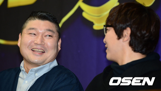 16일 오전 KBS신관 국제회의실에서 열린 KBS 새 예능 '달빛프린스' 기자간담회에서 강호동이 탁재훈과 얘기를 나누고 있다.