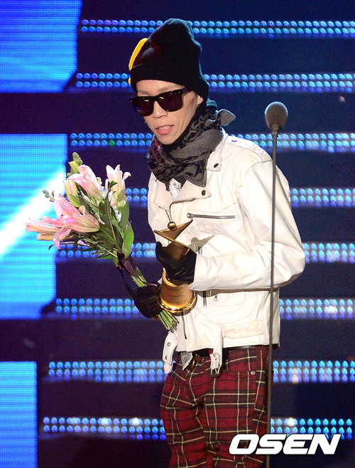 15일 오후 서울 방이동 올림픽공원 올림픽홀에서 열린 '제8회 2013 아시아모델상 시상식'에서 인기가수상을 수상한 울랄라세션의 임윤택이 트로피를 전달받고 있다.