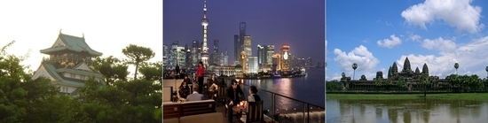 왼쪽부터 일본 오사카, 중국 상해, 캄보디아 앙코르와트.