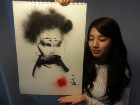 공개된 사진 속 수지는 흐뭇한 표정을 지으며 카메라를 향해 자신의 그림을 들어 보이는 모습이다. 특히 수지는 독특하면서도 수준급의 그림을 선보이고 있어 눈길을 끈다.