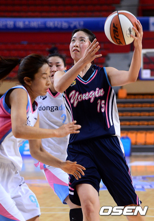16일 오후 경산실내체육관에서 열린 'KDB금융그룹 2013 여자농구 챌린지컵' 용인대와 동아백화점의 경기, 2쿼터 용인대학 박채정이 레이업슛을 시도하고 있다.