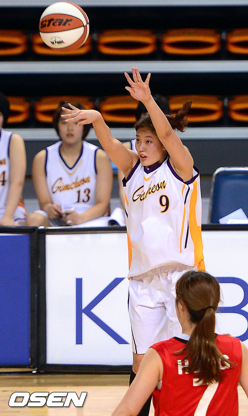 16일 오후 경산실내체육관에서 열린 'KDB금융그룹 2013 여자농구 챌린지컵' 김천시청과 부산시체육회의 경기, 4쿼터 김천시청 장민길이 3점슛을 시도하고 있다.