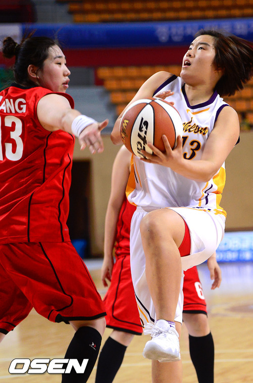 16일 오후 경산실내체육관에서 열린 'KDB금융그룹 2013 여자농구 챌린지컵' 김천시청과 부산시체육회의 경기는 김천시청이 64-56으로 부산체육회를 꺾고 승리를 거뒀다.