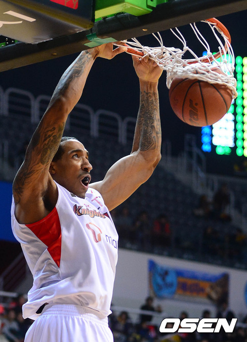 16일 오후 고양시 고양체육관에서 열린 '2012-2013 KB국민카드 프로농구' 고양 오리온스와 서울 SK의 경기 1쿼터 심스가 덩크를 시도하고 있다.