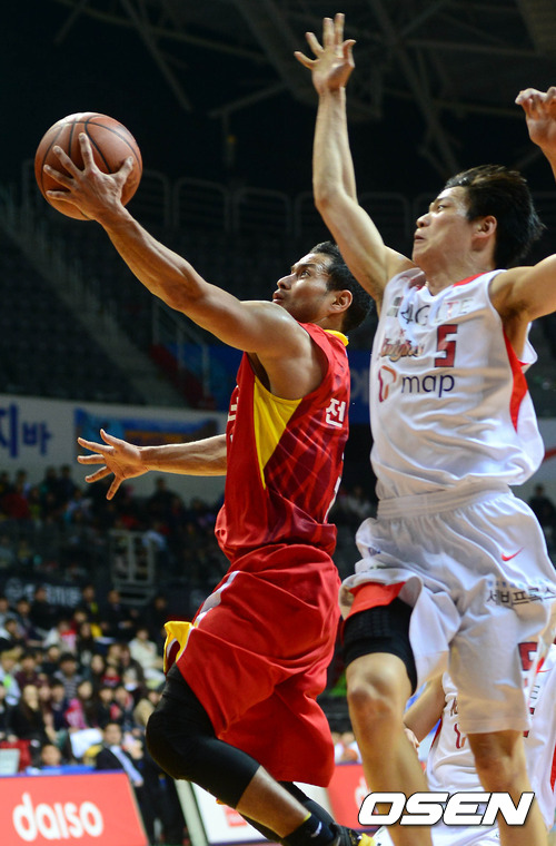 16일 오후 고양시 고양체육관에서 열린 '2012-2013 KB국민카드 프로농구' 고양 오리온스와 서울 SK의 경기 3쿼터 전태풍이 레이업을 시도하고 있다.