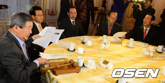 KBO 구본능 총재 및 각 구단주가 총회에 앞서 안건을 살피고 있다.