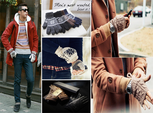 평상시 캐주얼룩에 편하게 매치할 수 있는 스타일이 니트 소재의 장갑. 이때는 밋밋한 원 컬러보다는 눈꽃 패턴이 심플하게 가미된 디자인을 선택하면 훨씬 멋스럽고, 스타일에 포인틀 역할을 한다.