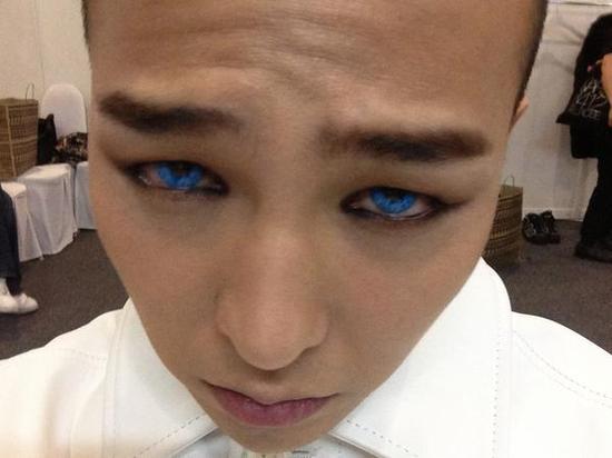 그룹 빅뱅의 지드래곤이 파란색 컬러렌즈를 착용한 사진을 올렸다.