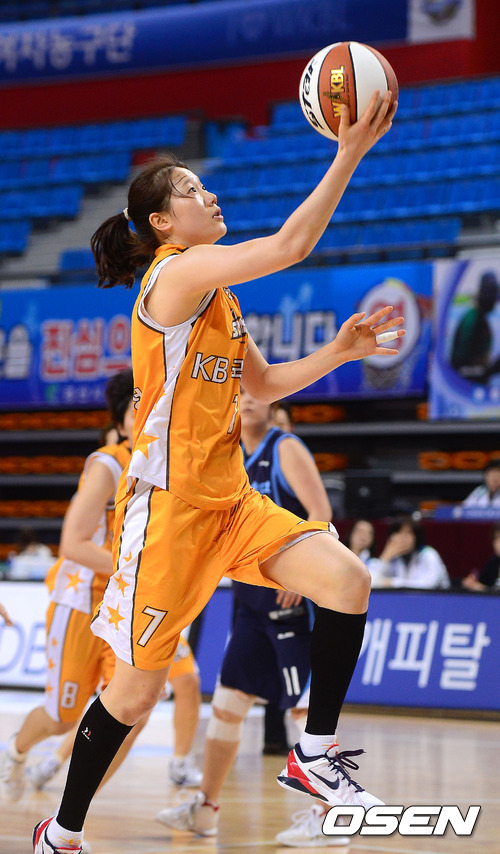 17일 오후 경산실내체육관에서 열린 'KDB금융그룹 2013 여자농구 챌린지컵' 준결승전 KB스타즈와 동아백화점의 경기, 2쿼터 KB 강아정이 레이업슛을 시도하고 있다.